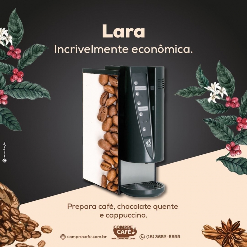 Apresentamos a Lara, uma solução que fornece vários tipos de bebidas, como café espresso, chocolate quente e cappuccino, com baixíssimo custo por dose. É perfeita para você criar um ambiente ideal para receber clientes e motivar colaboradores ☕